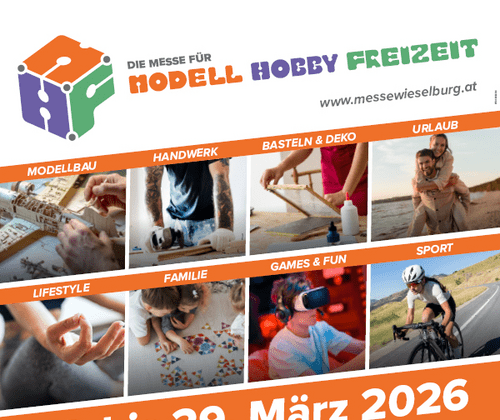 Mit der MODELL HOBBY FREIZEIT öffnet sich vom 27. März bis 29. März 2026 in Wieselburg eine einzigartige Erlebniswelt aus Modellbau, Technik, Kreativität, Handwerk, Spiel, Sport und Freizeit.
