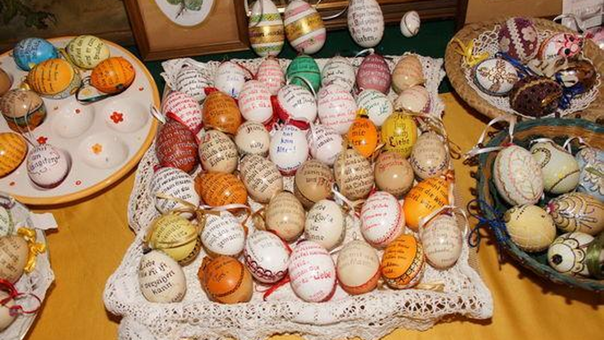 Gezeigt werden besondere Ostereier und österliche Volkskunst von Mariloise Jordan.