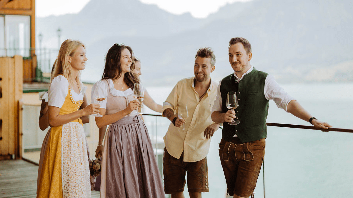 Freuen Sie sich auf ausgewählte Weine, lässige Live-Musik mit Philipp aus Ischl und zwei Stunden voller guter Gespräche mit Blick auf den Wolfgangsee.