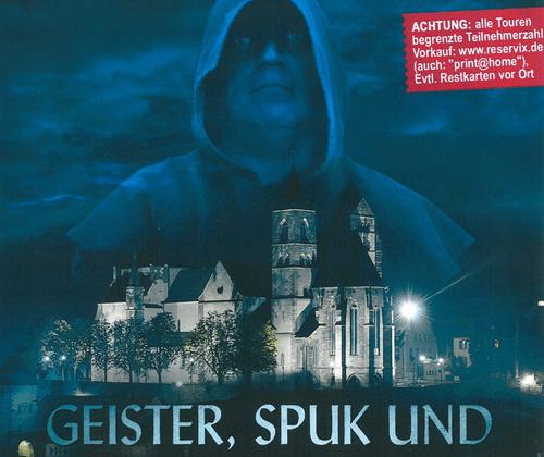 **Exklusiver Ghost-Walk** über alte Friedhöfe, schaurige Wege und Gassen hinauf zum Münsterberg. Folgen Sie dem Mönch und hören Legenden und Sagen, die Ihnen die Haare zu Berge stehen lassen. **Exklusiver Ghost-Walk zur späten Stunde über Breisachs sagenumwobenen Münsterberg.** **Folgen Sie uns über verlassene Friedhöfe, vorbei an verfluchten Orten hinauf in die alte Stadt. Hören Sie Geschichten von verfluchten Seelen, wundersamen Rettungen und über den alten Hexentum.** **Bruder Gregorius hat viel zu erzählen- und tut das auch. Folgen Sie ihm …!** ***Achtung! Nichts für schwache Nerven …*** **Treffpunkt:** **Marktplatz in Breisach am Rhein (vis-à-vis der Breisach-Touristik)** **Vorverkauf: RESERVIX (u.a. in der Breisach-Touristik und „print@home“ – wenn Sie auf den Termin klicken, kommen Sie direkt zum Vorverkauf)** **Evtl. Restkarten verkaufen wir vor Ort am Treffpunkt.** Dauer: etwa 90 Minuten