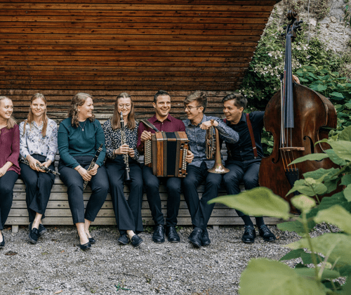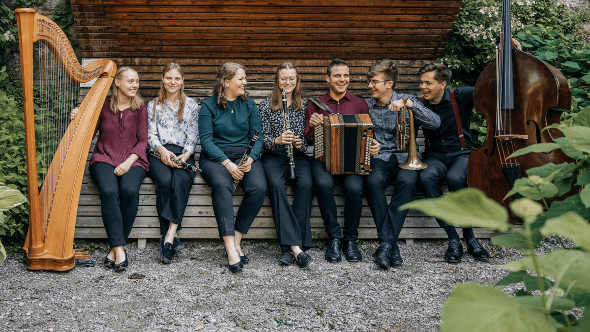 bei Schlechtwetter in der Pfarrkirche Losenstein! Schlechtwetterinfo unter 0676 979 13 61Die im Jahr 2021 gegründete BruckZuckMusi besteht aus sieben Studierenden der Anton Bruckner Privatuniversität Linz. Musikalische und persönliche Einflüsse aus Salzburg, Ober- und Niederösterreich vereinen sich zu einem außergewöhnlichen Klangkörper. Während Lea Kogler, Simone Jetzinger und Nicole Brückl auf den Klarinetten die mitreißende Melodie-Fraktion bilden, glänzt Paul Tiefenthaler auf der Basstrompete mit stimmigen Gegenmelodien. Kontrast zu den Blasinstrumenten schafft Mattias Staudecker an der Steirischen Harmonika, der sich bereits als Komponist für die BruckZuckMusi etabliert hat. Ein satter Klangteppich wird durch Laura Hinterleitner an der Harfe und Felix Brandauer am Kontrabass erzeugt.Tickets unter: https://kupfticket.com/events/bruckzuckmusi2026