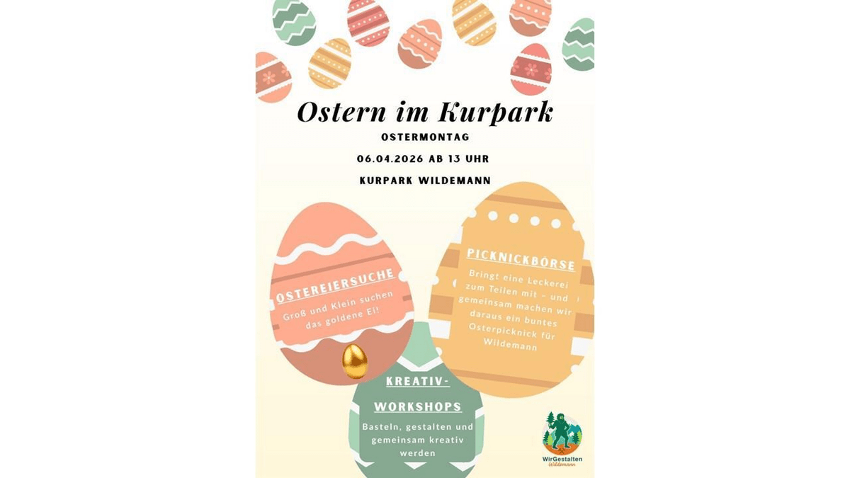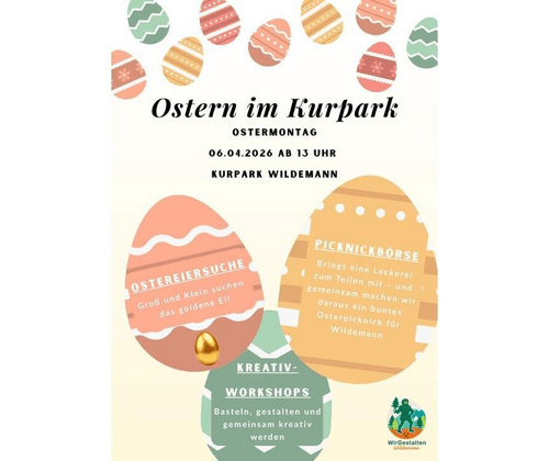 Ostereiersuche: Groß und Klein suchen das goldene Ei Picknickbörse: Bringt eine Leckerei zum Teilen mit - gemeinsam machen wir daraus ein buntes Osterpicknick für Wildemann Kreativ Workshops: basteln, gestalten und gemeinsam kreativ werden