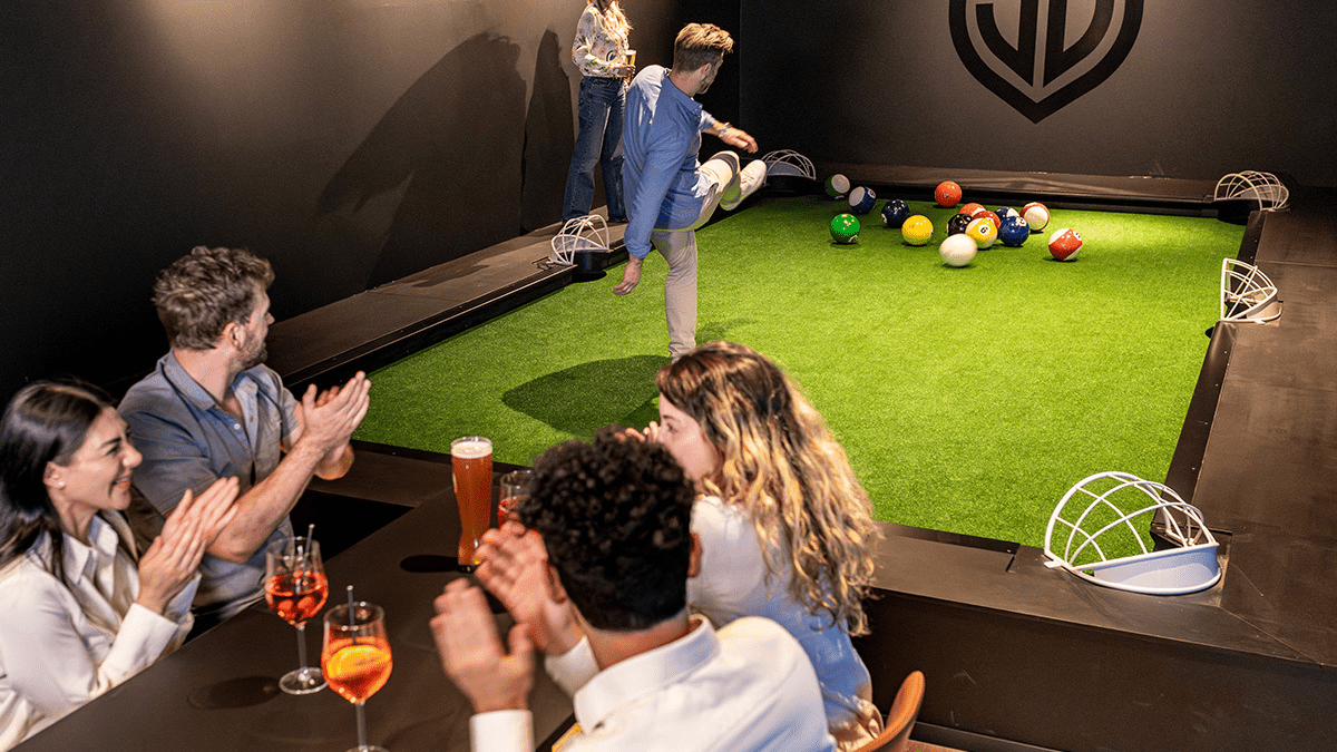 Jetzt erleben! Sichere dir deine Auszeit mit Jochen Schweizer. Inhalt Zutritt zur Fußballerlebniswelt 1 Getränk pro Person nach Wahl (ausgenommen sind Longdrinks) 1 Gericht pro Person nach Wahl Nutzung aller 13 Activity-Zones Live-Sport auf den großen Screens (DAZN/SKY) Zubuchung eines VIP-Raumes möglich Teilnehmer Gutschein gültig für 2 Personen Dauer Gesamtdauer: ca. 2 Stunden Reine Erlebnisdauer: ca. 1,5 Stunden Ausrüstung & Kleidung Mitzubringen: legere Straßenkleidung, Sportkleidung ist nicht zwingend notwendig Teilnahmebedingungen Mindestalter: 6 Jahre Teilnahme für Personen mit Handicap nach Absprache mit dem Veranstalter möglich