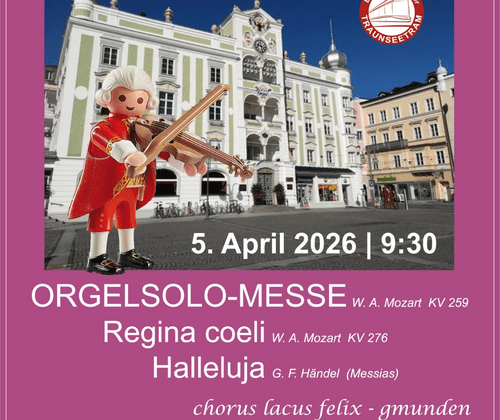Feiern Sie Ostern mit einem besonderen musikalischen Highlight: Die Soloorgel-Messe am 5. April 2026 in der Stadtpfarrkirche Gmunden kombiniert festliche Liturgie mit meisterhafter Orgelmusik. Unter der Leitung von Andreas Kaltenbrunner erklingen Werke von W. A. Mozart (KV 259 & KV 276) sowie das berühmte „Halleluja“ aus G. F. Händels Messias.Begleitet wird die Messe von der Orgelspielerin Victoria Gruber und dem chorus lacus felix – Gmunden, unterstützt von Sopran, Alt, Tenor und Bass. Die Veranstaltung bietet eine stimmungsvolle Atmosphäre für Besucherinnen und Besucher jeden Alters und ist ein besonderes musikalisches Erlebnis in der historischen Stadtpfarrkirche.