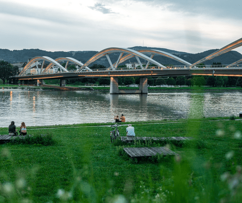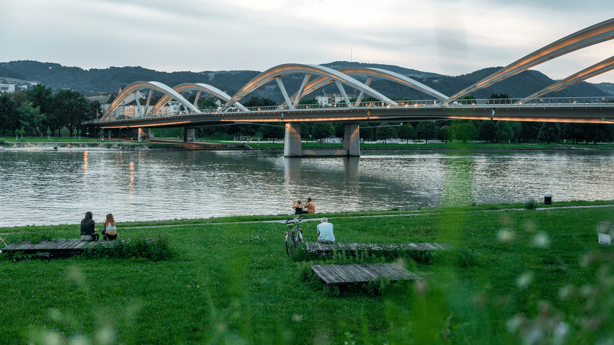 Treffpunkt: Aufgang zur Brücke im Donaupark (Linzer Seite)