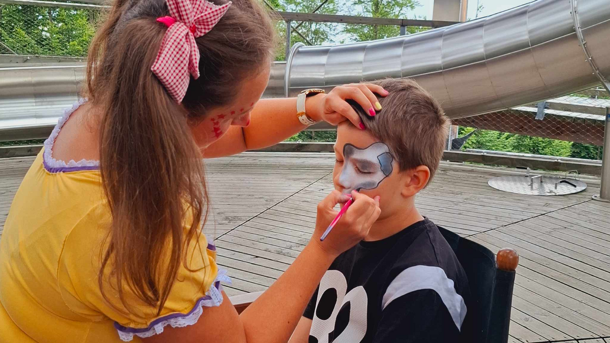 Unsere Künstlerin verzaubert Kinder mit fantasievollem Kinderschminken und verwandelt kleine Gesichter in bunte Kunstwerke. Ob bunte Schmetterlinge, kleine Füchse, wilde Löwen, glitzernde Feen oder mutige Superhelden – der Fantasie sind keine Grenzen gesetzt. Mit viel Kreativität, Farbe und Glitzer entsteht im Handumdrehen eine neue Lieblingsfigur.Ein fröhliches Erlebnis für alle Kinder und die perfekte Gelegenheit für tolle Erinnerungsfotos während eures Ausflugs am Baumwipfelpfad!