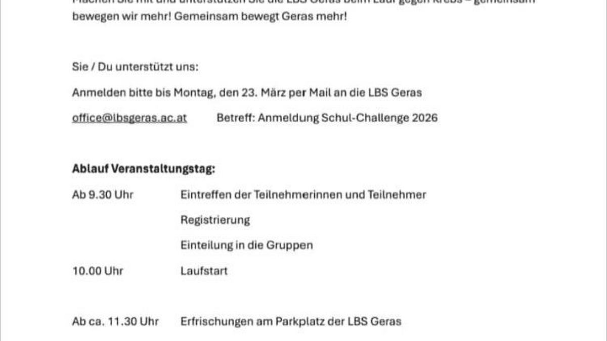 Anmeldung bis 23.3. per Mail an die LBS Geras: office@lbsgeras.ac.at; Betreff Anmeldung Schul-Challenge 2026