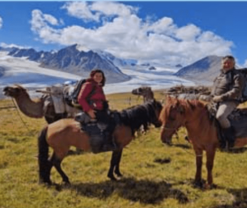 Oskar Lehner und Ursula Forster berichten vom Leben der Tsaatan-Rentier-Nomaden, dem mongolischen Naadam-Fest, von traditionellen Schamaninnen, vom Bergsteigen im Altai Gebirge, von weiten, menschenleeren Steppen und der Durchquerung der Wüste GobiLichtbildvortrag