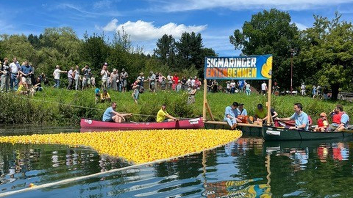 Der Service-Club „Round Table 162 Sigmaringen“ veranstaltet alle zwei Jahre das beliebte Sigmaringer Entenrennen auf der Donau. Nicht nur unsere gelben „Rennenten“ laufen erneut zur Höchstform auf – wir verwandeln das Donauufer zudem mit zahlreichen Aktivitäten zu einem Familienfest der besonderen Art. Spiel und Spaß für die ganze Familie. Am Sonntag, 12.07.2026 um 14 Uhr werden erneut bis zu 5.000 Badewannenenten auf der Donau für einen guten Zweck um die Wette schwimmen. Zu Wasser gelassen aus luftiger Höhe von der Donau-Brücke (Laizer Brücke), bis zur Ziellinie kurz vor der zweiten Donaubrücke (Burgwiesen) – Spannung pur! Für nur drei Euro kann jedermann ein Los für seine persönliche Rennente erwerben und damit einen von vielen attraktiven Preisen gewinnen. Der Verkauf für die Enten findet wieder auf dem Stadtfest am 27. & 28. Jui 2026, sowie auf dem Wochenmarkt, vor dem Renne, statt. Mit den Erlösen aus dem Entenrennen unterstützt Round Table Sigmaringen in diesem Jahr zwei Projekte:„ElefAnt“,ein Projekt des Landkreises, das Eltern in Erziehungsfragen unterstützt, und das Serviceprojekt „ Gründung Wald-, Natur-und Landwirtschaftskindergarten“ wodurch das Haus Nazareth bei der Gründung eines Naturkindergartens unterstützt wird.