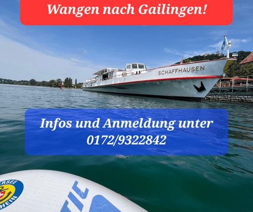 SUP-Tour „Ufm Rhy“ Geführte und begleitete Big SUP und/oder SUP Tour vom Bodensee/Untersee (Wangen) Strandbad aus auf dem Hochrhein entlang über Stein am Rhein bis nach Gailingen am Hochrhein ab Mai bis Ende September jeden Donnerstag Fantastische Tour mit Untersee und Hochrheinbefahrung – von Beidem das Beste! Strecke ca.16 km, ab Stein am Rhein mit Unterstützung der Flies Geschwindigkeit des Hochrheins Zeitbedarf: Tagestour, etwa 4-6h (je nach Pausen) Vorschlag geplanter eines Ablaufs (gerne individuell anpassbar):  9.00h Treffen in Wangen/Bodensee oder anderer vereinbarter Startpunkt der Tour  9:30h Materialausgabe und Sicherheitseinweisung, danach Start der Tour  Unterwegs Zwischenstopps und Pausen nach Bedarf (z.B. im Strandbad Öhningen, Stein am Rhein, in der Wildnis unterwegs)  Gegen 14:00/14.30 Ankunft im Strandbad Gailingen  Aufenthalt im Strandbad mit Mittagspause, optional Rheinschwimmen, Baden, Ballspielen und Relaxen  Gegen 15.30h/16:00h Rückfahrt Teilnehmer und Material von Gailingen zum Startpunkt der Tour (individuell anpassbar) Alternativ währe auch eine Rückfahrt mit dem Schiff auf dem Hochrhein **Ggf. Kosten für die Schiffsrückfahrt pro TN etwa 25,-€ (Gruppenkarte) oder Rückfahrt mit den am Morgen verlagerten Privat-PKWs; dann entstünden keine weiteren Rücktransport-Kosten** Stefan Koppenberg GSUPA zertifizierter SUP-Instructor und Tourguide Telefon: 0172/9322842 E-Mail: suptouren@web.de Instragram: @suptouren