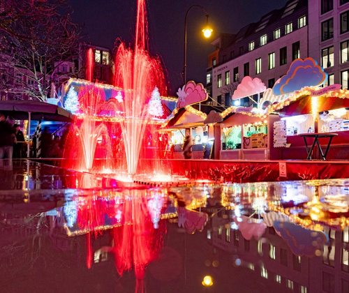 HEAVENUE Cologne auf dem Friesenplatz etabliert sich als ein Weihnachtsmarkt, der durch seine charakteristische Gestaltung und das atmosphärische Ambiente überzeugt. Pastellfarbene Marktstände bieten ein diversifiziertes kulinarisches Angebot. Ein rotierender Weihnachtsbaum sowie eine durchdachte Lichtgestaltung akzentuieren die festliche Stimmung. Ergänzend hierzu trägt ein abwechslungsreiches Bühnenprogramm zur Attraktivität bei. Der Brunnen mit Wasserfontänen stellt ein zusätzliches visuelles Element dar.