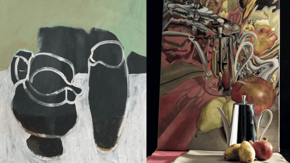 Laura Nitsche zeigt in ihrer aktuellen Serie „Wir wirklich ist die Wirklichkeit?” ihre Motive „doppelt“: sowohl die von ihr, in Zerrspiegeln reflektierte gemalte „Wirklichkeit“ als auch die „Ausgangs-Wirklichkeit“ in Form real existierender Objekte.