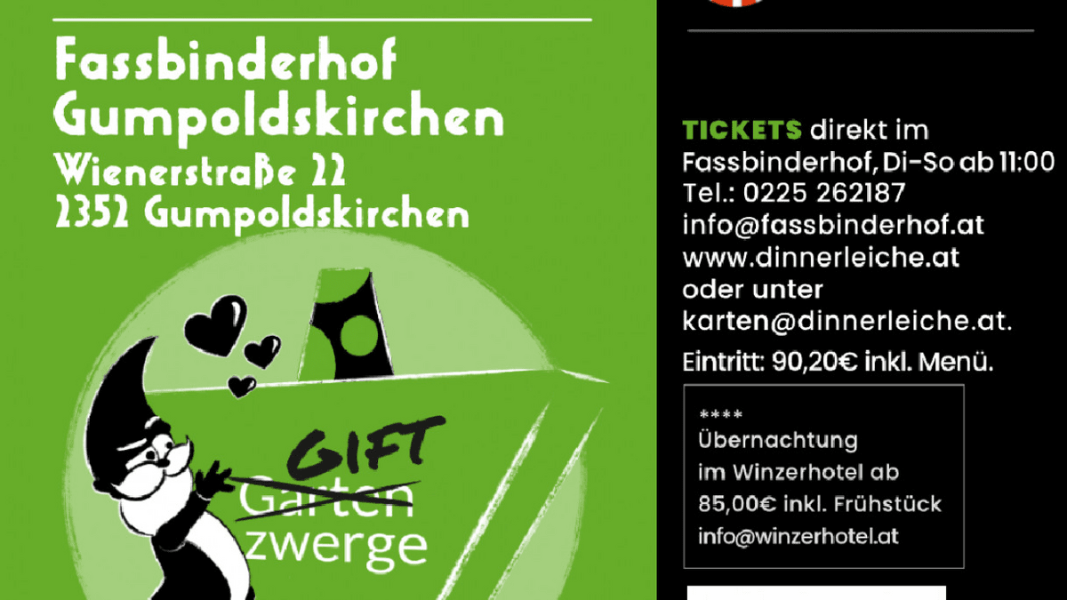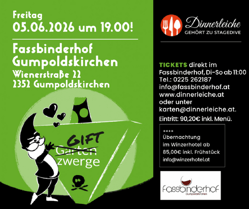 Garten (Gift) Zwerge - Dinnerleiche im Heurigen Fassbinderhof 19:00 Uhr