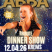 Freuen Sie sich auf eine mitreißende Dinner-Show in der unsere ausgebildeten Musicaldarsteller*innen das ABBA-Fieber neu entfachen und Sie mit der einzigartigen Popmusik und dem unverwechselbaren Sound der berühmten Popgruppe begeistern wird. Neben den erfolgreichen Welthits "Money, Money, Money", "Dancing Queen", "Waterloo" u.v.m. präsentiert unser stimmgewaltiges Ensemble auch gefühlvolle Balladen wie "The Winner Takes It All " oder "Fernando" und spiegelt damit den Facettenreichtum des schwedischen Quartetts wider. Glitzernde Bühnenoutfits, weite Schlaghosen, Plateaustiefel und die typischen Choreographien erzeugen das perfekte Abba-Feeling und lassen das Publikum in die 70’er Jahre eintauchen. Zusätzlich zu dem musikalischen Feuerwerk können Sie sich auf ein kulinarisches Highlight freuen, denn in den Showpausen wird ein auserlesenes Mehrgang-Gang-Menue aus der Küche des Hauses gereicht, welches im Ticketpreis bereits enthalten ist.