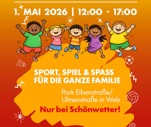 Titel: ASKÖ Familien-SpielfestDatum: 1. Mai 2026Uhrzeit: 12:00 – 17:00 UhrOrt: Park Eibenstraße / Ulmenstraße, WelsHinweis: Durchführung nur bei Schönwetter