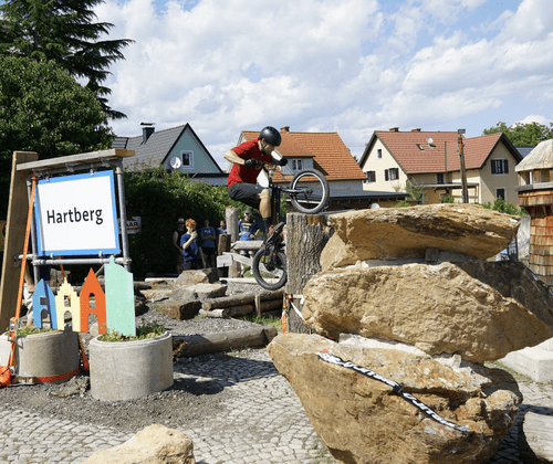 Am alten Hartberger Bauhof entstehen jedes Jahr Modelle von „Hartberger Highligts & regionaler Sehenswürdigkeiten, ein kleines „Minimundus“ – allerdings in Form von Trial-Hindernissen. So werden unter anderem die Ringwarte, die Ortstafel, die Città Slow Schnecke, der Allmer-Felsen sowie der Brühlbach kreativ in den Parcours integriert.