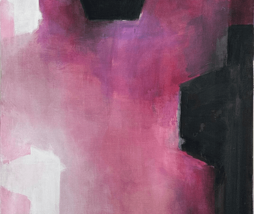 Schwarze, düstere Flächen bestimmen die Bildkomposition. Dabei werden sie mit hellen, leuchtenden Farben – gerne in Grün- und Violetttönen – und bisweilen mit gleißendem Weiß in Beziehung gesetzt, wodurch poetische Tiefenräume mit scharfkantigen Übergängen zwischen Hell und Dunkel und zwischen Vorder- und Hintergrund entstehen.
