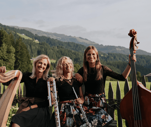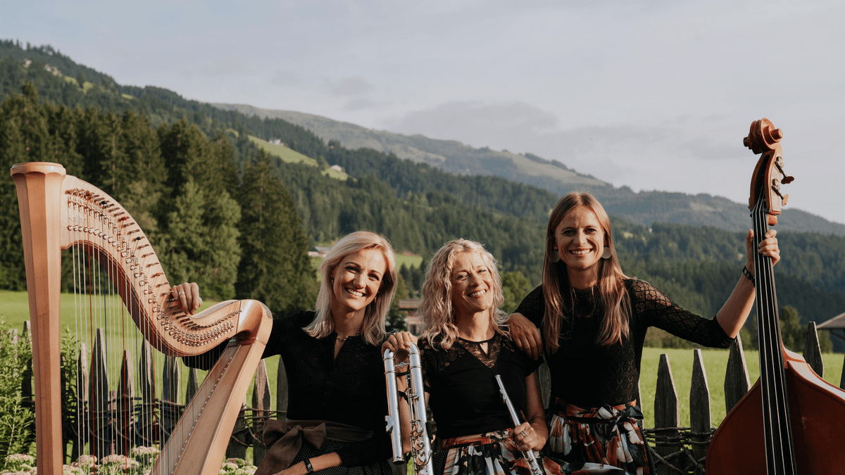 Das Trio „Damenwahl“ vereint drei Musikerinnen aus unterschiedlichen Regionen Österreichs, die sich im Rahmen der Woodstock Academy kennengelernt haben. Gemeinsam gestalten sie einen Konzertabend zwischen Volksmusik, Eigenkomposition und musikalischer Vielfalt. Katrin Unterlercher (Harfe, Hackbrett, Gesang), Christina Fischbacher (Kontrabass, Gitarre, Klavier, Gesang) und Renate Linortner (Flöten, Gesang) bringen ihre vielseitigen musikalischen Hintergründe ein – von klassischer Ausbildung bis hin zu Volksmusik und Ensemblearbeit. Ausgehend von ihren Wurzeln in der österreichischen Volksmusik entwickeln sie einen gemeinsamen Klang, der Tradition mit neuen Einflüssen verbindet. Ihre Eigenkompositionen spiegeln persönliche Erfahrungen und musikalische Entwicklungen wider. Ein Konzertabend mit feinen Klangfarben, musikalischer Tiefe und einem offenen Blick nach außen. Eintritt:
