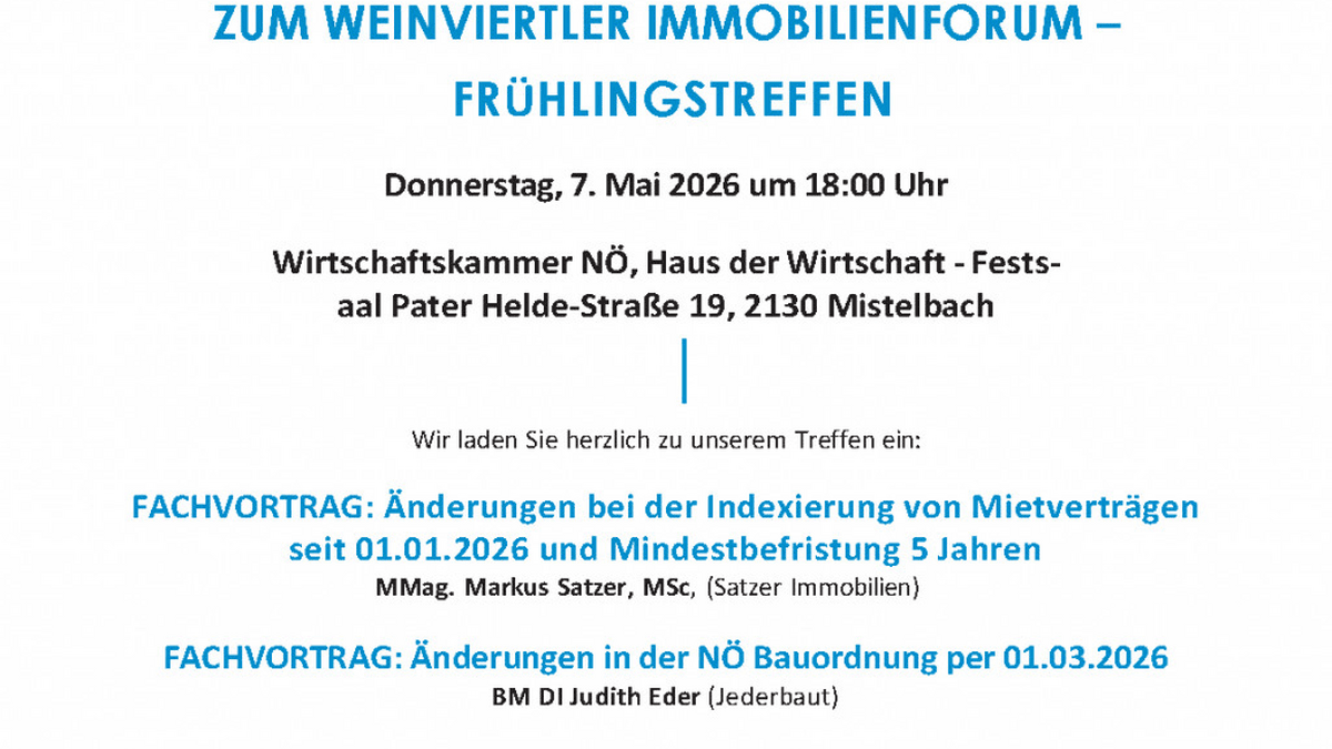 Einladung zum Weinviertler Immobilienforum - Frühlingstreffen