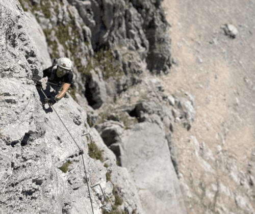 Voraussetzungen: Diese Tour richtet sich an erfahrene Klettersteiggeher:innen, mit ausreichend Kondition für 2,5 h Zustieg, 2 h Kletterzeit und 3 h Abstieg. Sehr gute Ausdauer und körperliche Verfassung, Klettersteigerfahrung ist Voraussetzung, Erfahrung im alpinen Gelände, Trittsicherheit und Schwindelfreiheit, sicherer Umgang mit Klettersteigset, AV-Mitgliedschaft erforderlich