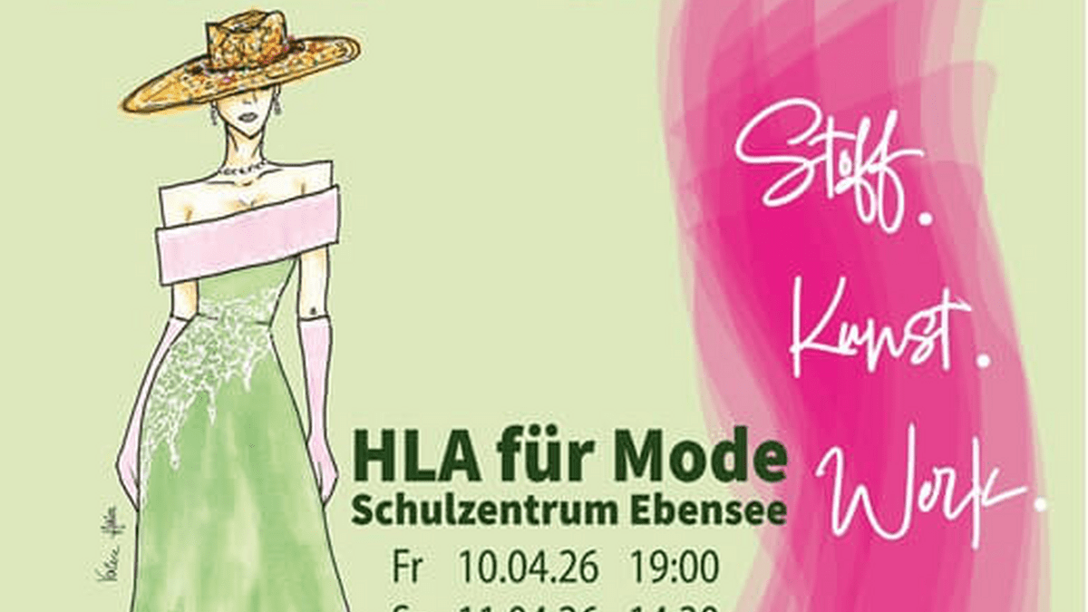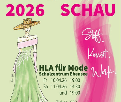 Unter dem Motto Stoff.Kunst.Werk lädt die Modeschule Ebensee zur Modeschau 2026 ein – ein Highlight, das Mode, Kreativität und Handwerk auf die Bühne bringt!