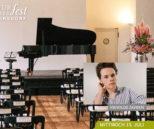 Der 20-jährige Pianist Vsevolod Zavidov gilt als großes Talent der russischen Klavierschule. Internationale Aufmerksamkeit erhielt er mit dem Gewinn des Prix UBS Jeunes Solistes 2025, einem renommierten Karrieresprungbrett für Studierende an Schweizer Musikhochschulen. Der in Genf lebende gebürtige Moskauer beeindruckt mit außergewöhnlicher Reife und Ausdruckskraft. Beim Kulturfest Schloss Walpersdorf eröffnet er den Festreigen im Festsaal mit einem Bravourprogramm – eine klare Empfehlung für die Zukunft.