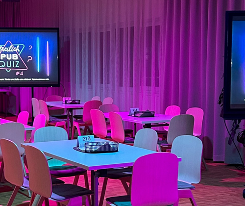 Für das leibliche Wohl ist ebenfalls gesorgt: Eine kleine, feine Karte mit ausgewählten Köstlichkeiten sowie leckere Getränke machen den Quizabend perfekt.