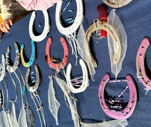 Wir fertigen Traumfänger aus echten Hufeisen! Mit bunten Bändern, Federn und Perlen verwandeln wir die Glücksbringer in einzigartige Kunstwerke. Umgeben von Pferden an einem geschützten Platz am Hof wird das kreative Gestalten zu einem tollen Erlebnis für Pferdefans!