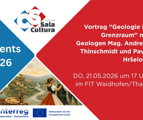 Im Rahmen des INTERREG-Projektes „Sala Cultura CzonA“ finden im Jahr 2026 zahlreiche Veranstaltungen und Ausstellungen statt, die sich mit Kunst, Bodenschätzen, Geschichte und Traditionen der Grenzregion zwischen Jemnice (CZ) und dem Thayaland beschäftigen.