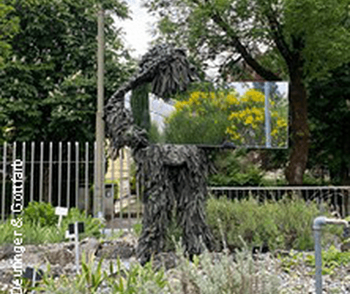 Zwei Tänzer in Tarnanzügen und mit tragbaren Spiegeln bewegen sich in einem feinen Spiel zwischen Sichtbarkeit und Verschwinden. Ausgangspunkt ihrer Recherche ist ein botanischer Garten – ein Ort, an dem sie das Paradox von Anpassung und Präsenz erkunden.