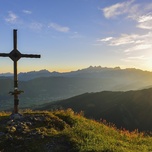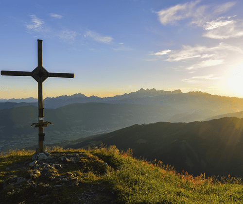 Am Gipfel eröffnet sich ein wunderschöner Rundblick auf die umliegende Bergwelt – vom Hohen Dachstein über die Bischofsmütze und den Hochkönig bis hin zum Tennen Gebirge und den Hohen Tauern mit dem Großglockner.