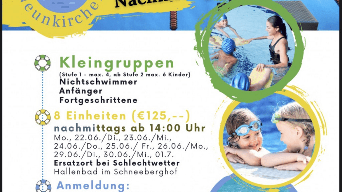 Der Neunkirchner Schwimmverein veranstaltet mit Unterstützung der Gemeinde Puchberg im Freibad Puchberg für Kinder ab 4 Jahren einen Schwimmkurs.