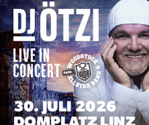 Mit einem Hitfeuerwerk, das Generationen verbindet sorgt DJ ÖTZI gemeinsam mit der Woodstock Allstar Band am 30. Juli 2026 am Domplatz in Linz für einen Konzertabend voller Energie, Herz und großer Songs.