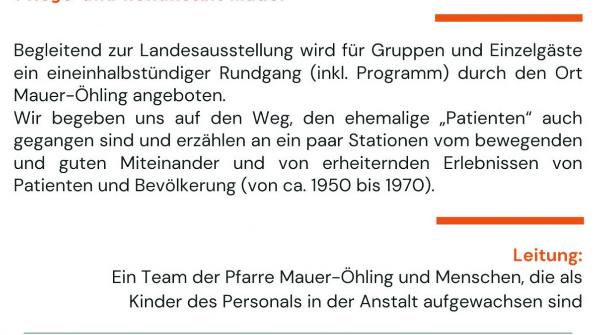 Leitung: Ein Team der Pfarre Mauer-Öhling und Menschen, die als Kinder des Personals in der Anstalt aufgewachsen sind