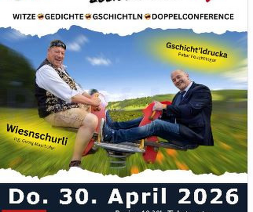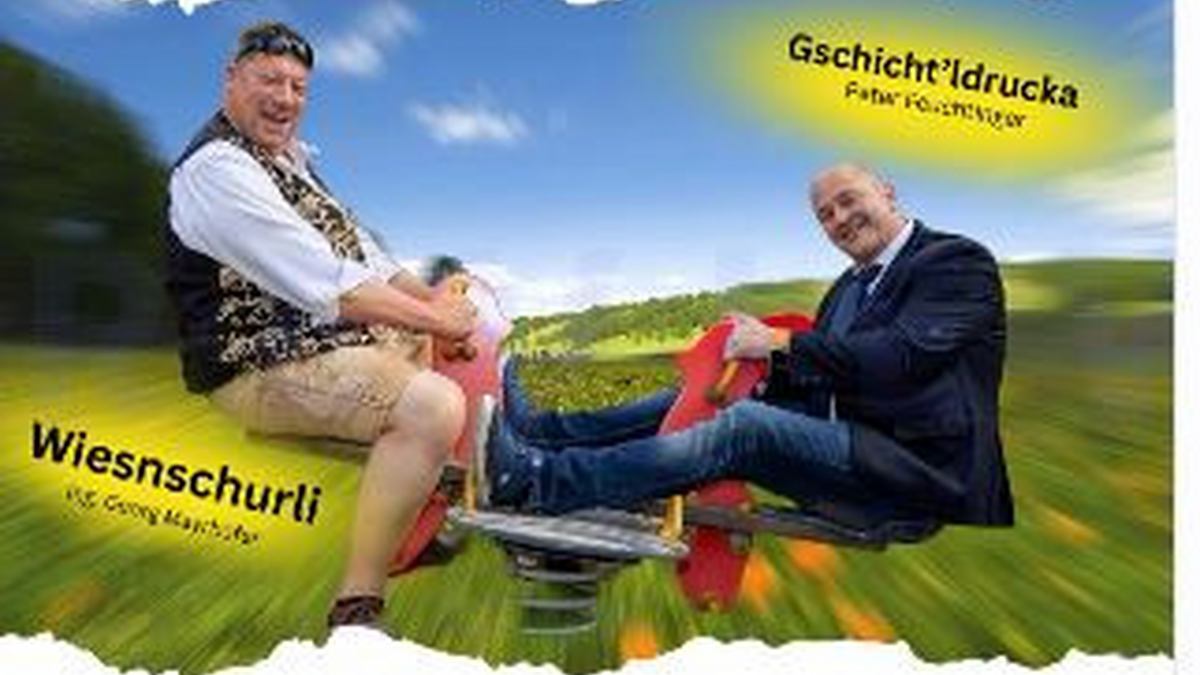 Wiesnschurli (Georg Mayrhofer) und der Gschicht‘ldrucka (Peter Feuchtinger) erzählen Witze,