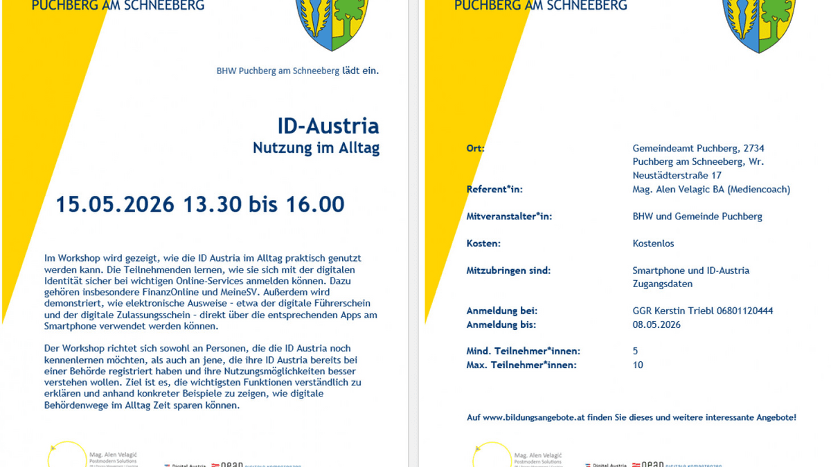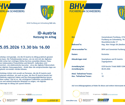 Der Workshop richtet sich sowohl an Personen, die die ID Austria noch kennenlernen möchten, als auch an jene, die ihre ID Austria bereits bei einer Behörde registriert haben und ihre Nutzungsmöglichkeiten besser verstehen wollen. Ziel ist es, die wichtigsten Funktionen verständlich zu erklären und anhand konkreter Beispiele zu zeigen, wie digitale Behördenwege im Alltag Zeit sparen können.