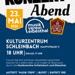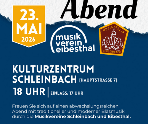 Freut Euch auf einen abwechslungsreichen Abend mit traditioneller und moderner Blasmusik durch den Musikverein Schleinbach und den Musikverein Eibesthal.