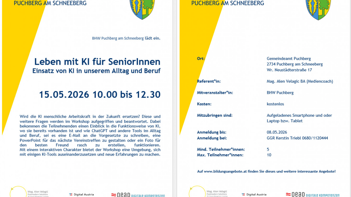 Wird die KI menschliche Arbeitskraf in der Zukunft ersetzen? Diese und weitere Fragen werden im Workshop aufgegriffen und beantwortet. Dabei bekommen die Teilnehmenden einen Einblick in die Funktionsweise von KI, wo sie bereits vorhanden ist und wie ChatGPT undandere Tools im Alltag und Beruf, sei es eine E-Mail an die Vorgesetzten zu schreiben, eine PowerPoint für das nächste Vereinstreffen zu gestalten oder ein Foto für den besten Freund rasch zu erstellen, funktionieren. Mit einem interaktiven Charakter bietet der Workshop eine Umgebung, sich mit einigen KI-Tools auseinanderzusetzen und neue Erfahrungen zu machen.