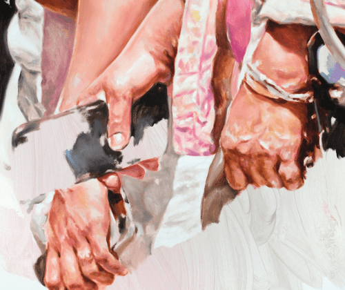 Seien es Bewegungen, Haltungen oder zueinander gewandte Menschen scheinbar im Gespräch oder in einer Interaktion: Martin Veigl vereint in seinen Bildwerken diese leisen Gesten zu einer malerischen, momentanen Aufnahme. Gerade das Ausschnitthafte und nicht völlig in der Bildfläche Gemalte, suggeriert den Augenblick der Erinnerung, wo oft Flächen nicht mehr im Gedächtnis und deshalb frei bleiben, da man sich auf das Wesentliche konzentriert und scheinbar Unwichtiges ausblendet.