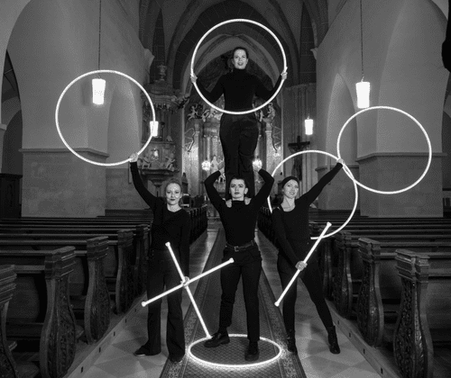 “Was geht ab?” Vier Zirkus-Artistinnen finden darauf mit „Plötzlich:Mensch“ eine Antwort, die ohne Worte auskommt. Objektmanipulation und Artistik werden zum Medium, um eine Geschichte über Freude, Wut, Trauer, Hoffnung, Angst und Liebe zu erzählen. Viermal wird der von Spiritualität durchdrungene Kirchenraum zum Erlebnisraum, in dem sichtbar wird, was dort sonst nur spürbar ist. So entsteht ein einmaliges Gesamtkunstwerk, das auch ein junges Publikum anspricht.