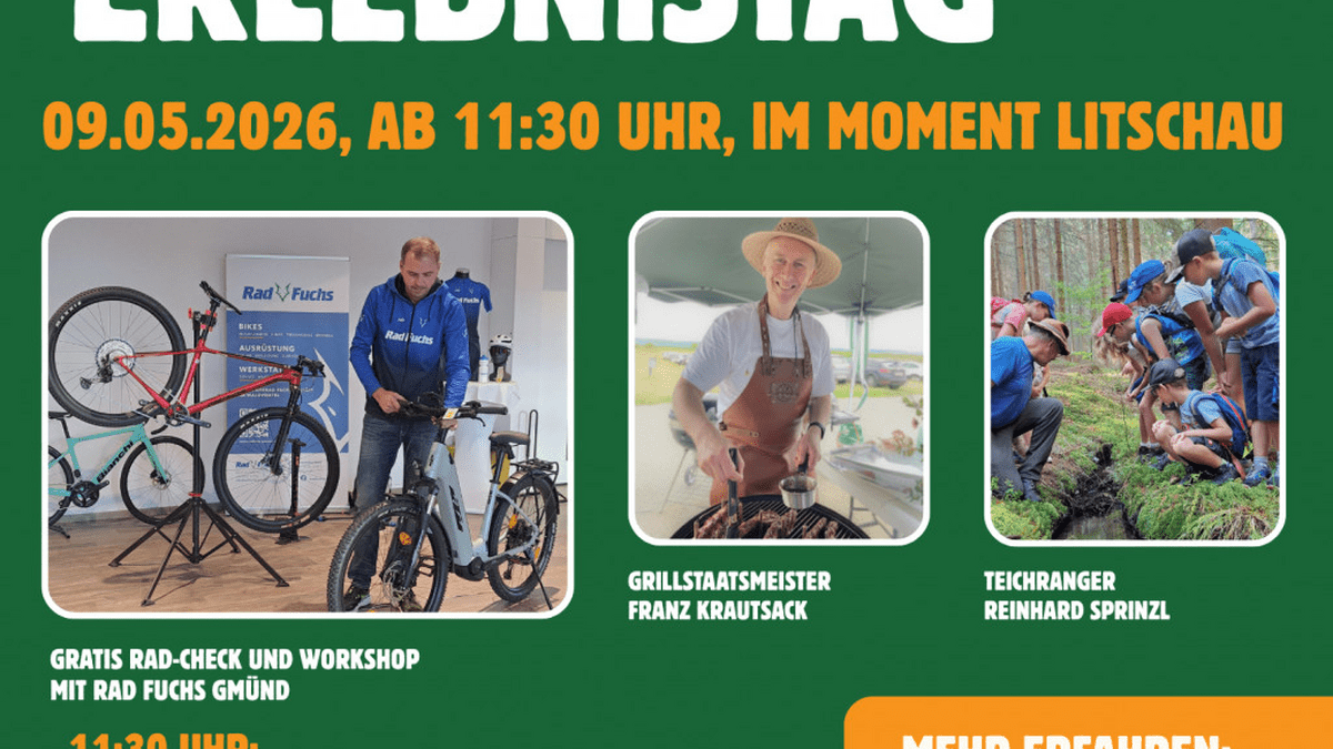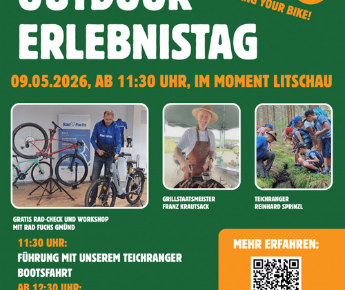 Am Samstag, 09.05.2026, findet der Rad- und Outdoor Erlebnistag im MOMENT statt. Das Programm umfasst eine Wanderung, Bootsfahrt, Grillerei Buffet sowie einen gratis Rad-Check. Den Abschluss bildet ein Workshop rund ums Fahrrad mit praktischen Tipps.