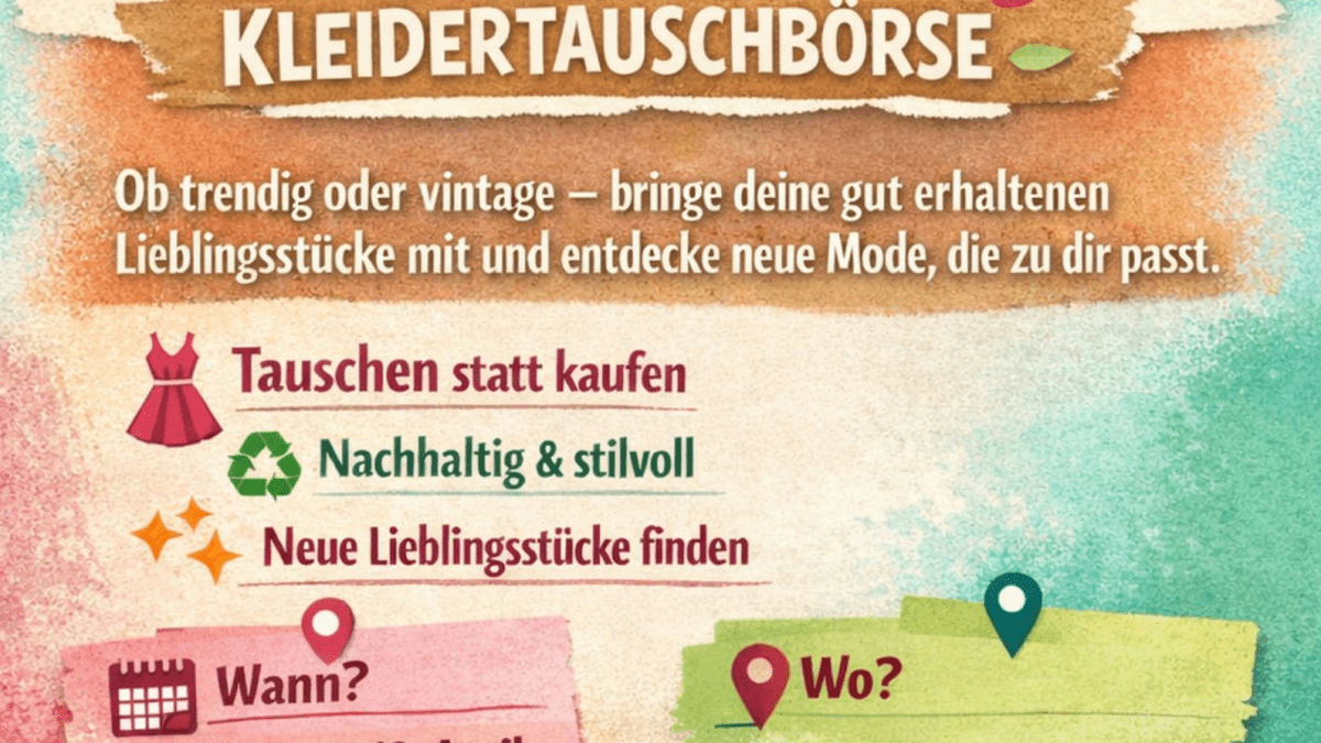 Am Sonntag, 19.04. laden wir Sie herzlich zu unserer Kleidertauschbörse für Damenbekleidung ein.