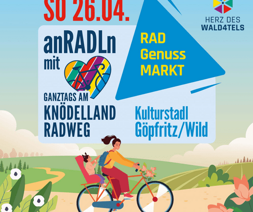 Am Sonntag, dem 26. April 2026, startet die Rad-Genuss-Region Herz des Wald4tels offiziell in die neue Radsaison – und das mit einem besonderen Highlight: „anRADLn mit Herz“ entlang des beliebten Knödellandradwegs.