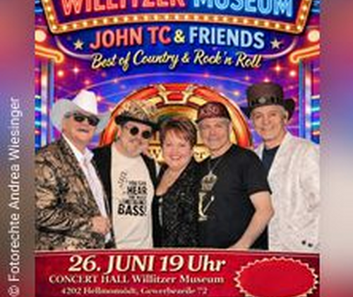 Das Ensemble serviert mit vierstimmigen Gesang eine typische Mischung aus Traditionals, Bakersfield & Nashville Sound. Die Musiker um JOHN TC - Nathalie Wurm, Paul Hofstadler, Alex Ringler und Wolfgang Brunner waren bislang auf nationalen und internationalen Bühne unterwegs. Die Leidenschaft zur Musik und Professionalität verbindet die Musiker - JOHN TC & FRIENDS sind wahre Freunde, das Publikum spürt ihren Spaß und die Freude auf der Bühne.