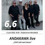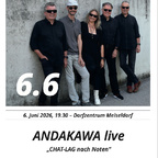 Mit einem unterhaltsamen Konzertprogramm präsentiert sich ANDAKAWA auch im heurigen Jahr. Im musikalischen Gepäck befinden sich bekannte Songs und Melodien, denen ANDAKAWA durch Übersetzungen in die oberösterreichische Mundart, originelle Texte und eigene Arrangements eine spezielle Note und den entsprechenden Lokalkolorit verleiht.
