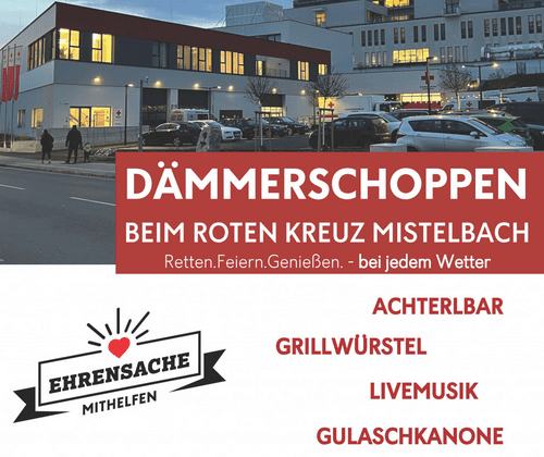 Der Rote Kreuz Bezirksstelle Mistelbach lädt herzlich zum gemütlichen Dämmerschoppen ein! Freuen Sie sich auf stimmungsvolle Live-Musik und gesellige Stunden in entspannter Atmosphäre. Für das leibliche Wohl ist bestens gesorgt: Genießen Sie frisch zubereitetes Gulasch aus der Feldküche sowie weitere regionale Schmankerl. Ein perfekter Abend, um gemeinsam zu feiern und den Tag genussvoll ausklingen zu lassen!