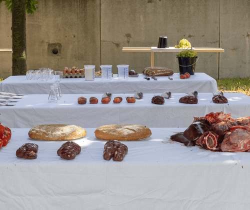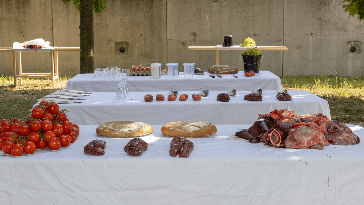 Die Lehraktion eröffnet Besucher:innen einen unmittelbaren Zugang zur Praxis des Künstlers – als Einladung, Nitschs Idee des Gesamtkunstwerks nicht nur zu betrachten, sondern als körperlich-geistigen Erfahrungsraum zu begreifen. Alle Teilnehmenden sind herzlich eingeladen, Teil dieser Lehraktion zu werden und unter Anleitung mitzuagieren. Damit bietet sich die seltene Möglichkeit eine Aktion von Nitsch nochmal live mitzuerleben.