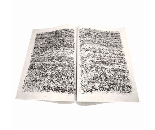 Wolfgang Maria Reiter schreibt in seinen Werken den immer gleichen Text, der ihn seit seiner frühen Kindheit nicht mehr loslässt. Durch die ständige Wiederholung tritt der eigentliche Inhalt des Textes in den Hintergrund, die Schrift wird zum Gestaltungsmittel und das Schreiben zu einem repetitiven, meditativen Prozess. Die Bedeutung schwingt immer mit, der zentrale Inhalt der Werke ist jedoch die Form. Reiter bedient sich der fortlaufenden Linie der aneinander gereihten Buchstaben, um schreibend seine Bilder in unterschiedlichen Formaten zu gestalten. Sie reichen von Miniaturen bis zu dreidimensionalen Schriftobjekten, die er aus beschriebenem Papier faltet und formt. Wolfgang Maria Reiter schreibt mit Holzstäbchen und Tusche auf Transparentpapier. Das Schreiben wird zur Projektionsfläche von Empfindungen und Stimmungen des Künstlers, Norbert Trawöger nennt seine Arbeiten „seismografische Kalligrafien“.