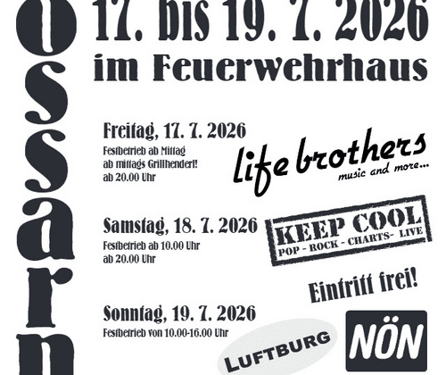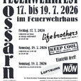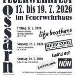 Die Freiwillige Feuerwehr Ossarn veranstaltet ihr traditionelles Feuerwehrfest von Freitag 17.Juli bis Sonntag 19.Juli 2026.