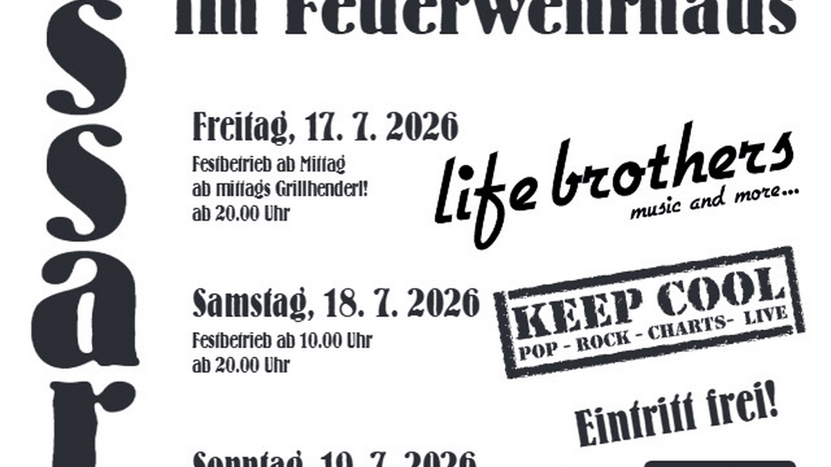 Festbetrieb ab Freitag Mittag, ab 20.00 Uhr sorgt die Partyband „Lifebrothers“ für gute Unterhaltung. Eintritt Frei !!!
